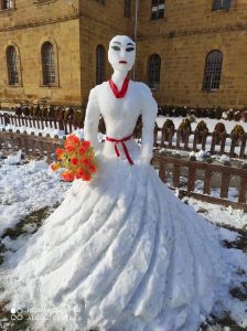 Yozgat’ta bir lisenin bahçesinde yapılan “kardan gelin” görenlerin dikkatini çekti. Caddeden geçen ve kardan gelini gören vatandaşlar hatıra fotoğrafı çektirdi.