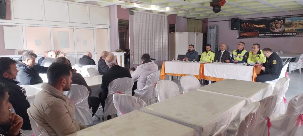 Emniyet ve Jandarma görevlileri, servis şoförlerine yönelik gerçekleştirilen bilgilendirme toplantısında; yüksek sesle müzik kullanımından, araçlarda bulundurulması gereken araç ve gereçlere kadar geniş  bilgiler paylaşıldı. Ayrıca, özellikle kış aylarında önem kazanan kış lastiği kullanımı ve diğer trafik kuralları konusunda detaylı bilgilendirmeler yapıldı.