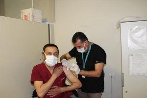 28 gün sonra ikinci doz Korona Virüs (CoronaVac) aşısı Hastane Başhekimi Uzm. Dr. Mustafa Kozan, Başhekim Yardımcısı Dr. Mete Selvi ve sağlık çalışanlarına uygulandı.