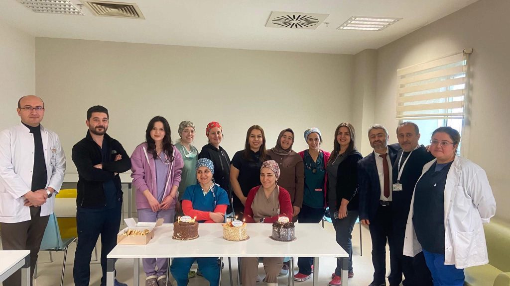 Yozgat Şehir Hastanesindeki anestezi teknisyenleriyle birlikte pasta keserek kutlama yapan Sağlık Sen Şube Başkanı Gökhan Eroğlu, “Bilgi ve becerileriyle insanların yaşamına dokunan anestezi teknisyenleri ve teknikerlerimizin, Anestezi Teknisyenleri ve Teknikerleri Günü kutlu olsun. Biz Sağlık-Sen’iz, büyük bir aileyiz” dedi.