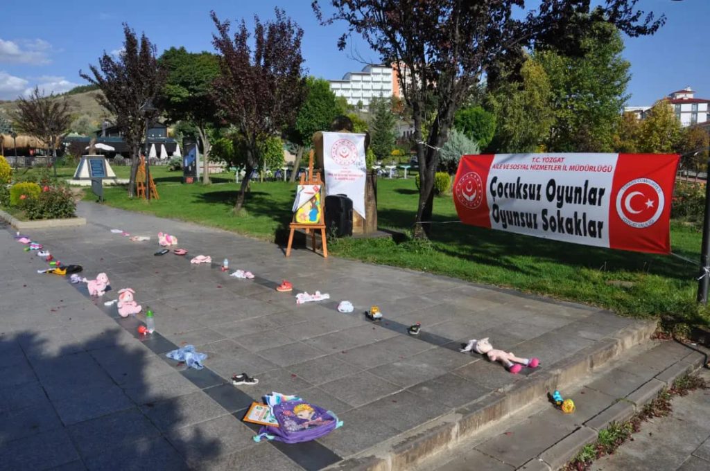 Yozgat Aile ve Sosyal Hizmetler İl Müdürü Arif Topal’ın öncülüğünde, savaş mağduru çocukların yaşadığı zorluklara dikkat çekmek amacıyla anlamlı bir farkındalık etkinliği düzenlendi. “Çocuksuz Oyunlar, Oyunsuz Sokaklar.” sloganıyla gerçekleştirilen etkinlik, Gazze, Lübnan ve Doğu Türkistan gibi çatışma bölgelerinde zor koşullarda yaşam mücadelesi veren çocuklara dikkat çekmeyi amaçladı.
