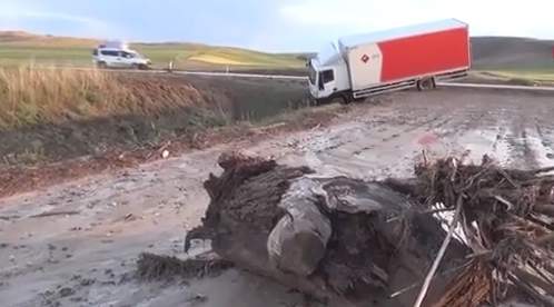 Emin Elbaşı yönetimindeki 38 BM 447 plakalı kargo kamyonu, menfezlerden taşan sel suları nedeniyle kontrolden çıkarak şarampole kaydı. Kamyon sürücüsü Elbaşı, yaşanan olayla ilgili Yolda ilerlerken sel yolun üstünden aştı ve şiddetiyle arabayı sürükledi diye konuştu.