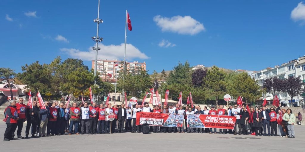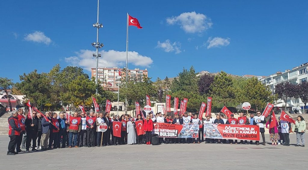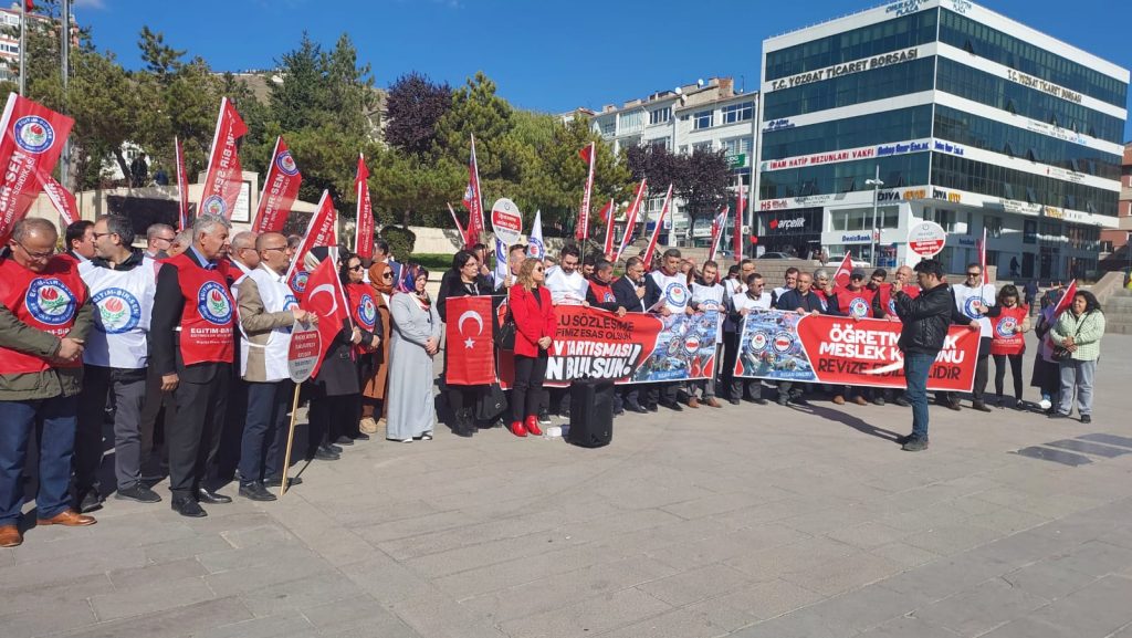 Eğitim Bir Sen Yozgat Şube Başkanlığı üyeleri Cumhuriyet Meydanında bir araya gelerek Öğretmenlik Meslek Kanunun beklentileri yeterince karşılamadığını belirterek seslerini duyurmaya çalıştı.