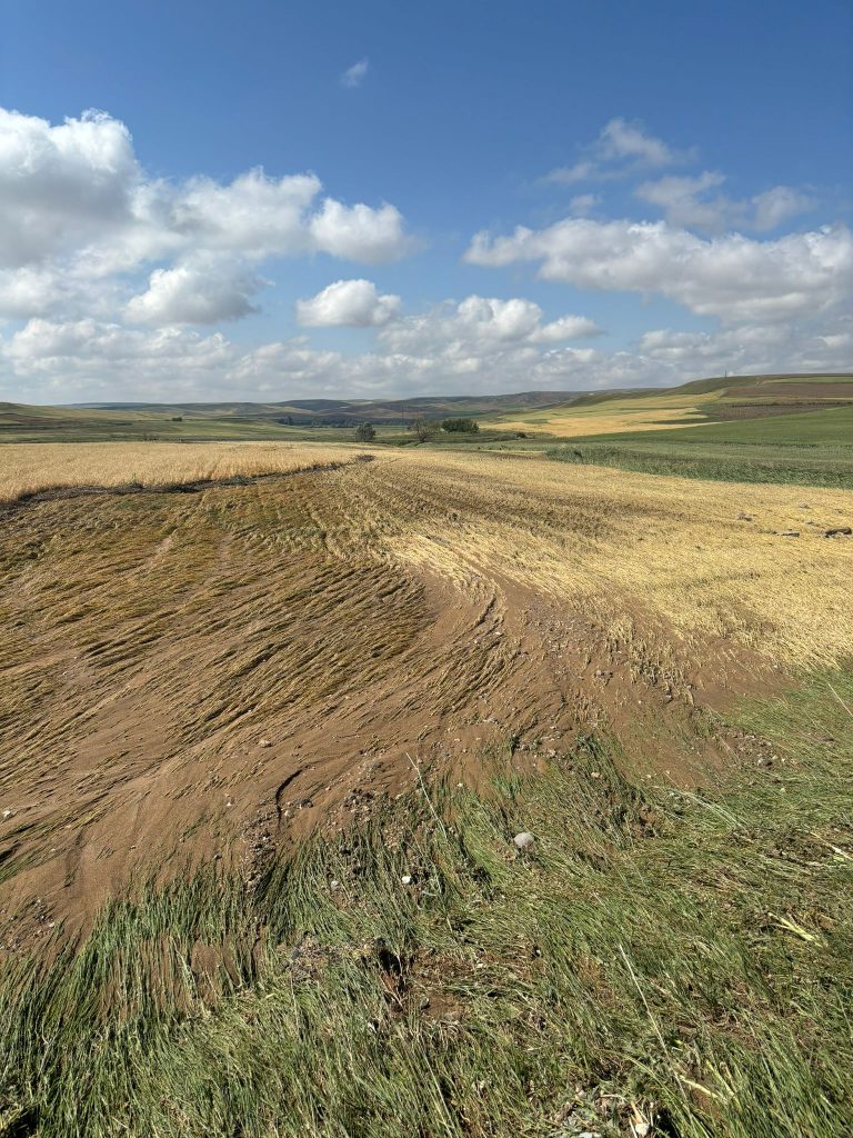Yozgat’ın köylerinde dün etkili olan dolu yağışı, ekili alanlarda büyük çaplı hasara neden oldu. Buğday, arpa, şeker pancarı, ayçiçeği, nohut, mercimek gibi birçok ürün zarar gördü. Çiftçiler, yaşanan felaketin ardından yardım ve destek talep ediyor.