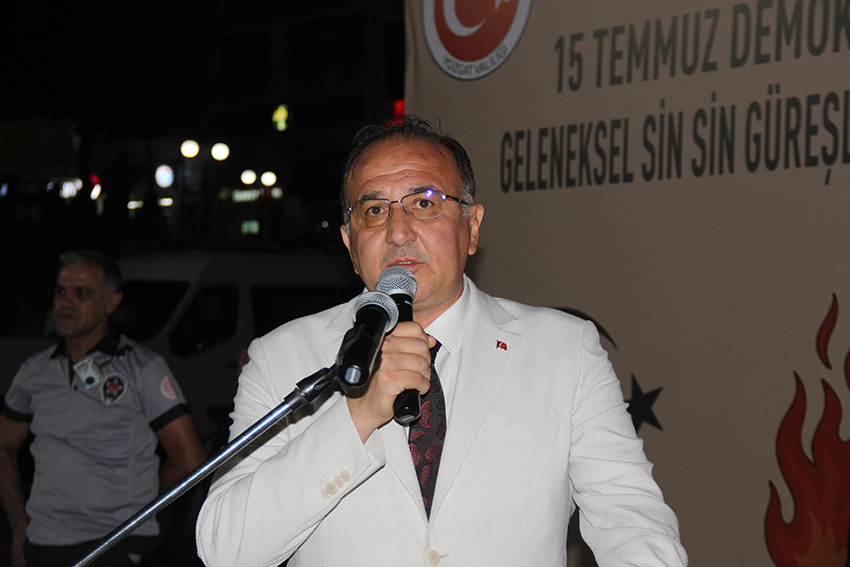 İl Müdürü Hopur, “15 Temmuz’un aziz hatırasına ithafen düzenlediğimiz bu etkinlikte, tarihe adeta kaybolmuş gibi görünen ve ecdadımızdan bizlere miras kalan Sin Sin Güreşi’ni ilk kez Yozgat Er Meydanı’nda gün yüzüne çıkardık. Geçmişte insanlar özellikle savaşlara hazırlanırken, geceleri ateş yakıp etrafında dönerek oynarlar, zamanla bu hareketler kızışarak güreşe dönüşürdü. Ateşin etrafında başlayan bu oyun, ‘Sin Sin Ateşi’nden’ adını alarak güreşe evrilmiş, Sin Sin Güreşi adını kazanmıştır.”diye konuştu.