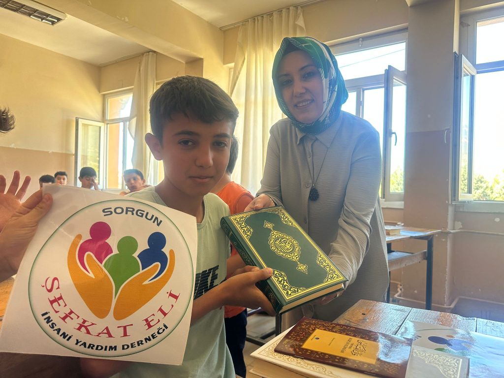 Sorgun Şefkat Eli İnsani Yardım Derneği Başkanı Pınar Ünal, beraberinde dernek üyeleri ile birlikte deprem bölgesi olan Hatay’ın Hassa ilçesine giderek, burada açılan Yaz Kur’an Kursunda ki öğrencilere Kur’an-ı Kerim hediye etti.