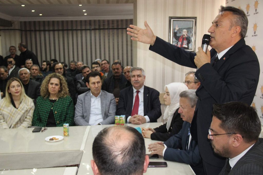 Dursun, “2001 Yılında biz bu yola çıktık. O günden bu güne bir çok görevde bulundum. Düzenleme Tertip komitesi başkanlığı, teşkilat başkanlığı, il seçim kurulu başkanlığı gibi görevlerde bulundum. Bir çok göreve talip oldum. Küsmedim, darılmadım. Allah nasip etti, sayın Cumhurbaşkanımız ile İl Başkanı olarak yakından çalışma fırsatı buldum. Görev yaptığımız süre içerisinde elimizden geldiği şekilde adaletli davranmaya çalıştık. Allah’a şükür ne kendimiz yere baktık, ne de değerli teşkilat üyelerimiz yere baktırdık, ne de Reisimizin yüzünü yere baktırdık. Önümüzde bir seçim var. Ben 2019 belediye başkanlığı seçimlerinde Büyük Sinema’da bir konuşma yaptım. Ben dört sene önce bugünü söyledim. Bir tarafta vatan sevdalısı, ezan sevdalısı, Kur’an sevdalısı Sayın Cumhurbaşkanımız Recep Tayyip Erdoğan dedim, Devlet Bahçeli dedim, Mustafa Destici gibi babayiğitler dedim. Diğer tarafta ise bu ülkeyi bölmeye çalışan, devletin askerine polisine kurşun sıkan, 6 aylık bebeyi, 70 yaşındaki nineyi katleden PKK’lılar, HDP’liler, CHP’liler, Apocular, FETÖcüler bir araya geldi dedik. Bugün bakıyoruz 6’sı masanın üstünde, bir tanesi masanın altında, biri Pensilvanya da, biri Washington, Fransa’da Makron, İngiltere’de, şurada burada, herkes Recep Tayyip Erdoğan gitsin diyor. Adam ne diyor, biz darbe ile yapamadığımızı seçim ile yapacağız diyor. Bir tarafta Recep Tayyip Erdoğan gibi bir lider gidiyor Birleşmiş Milletler Genel Kurulu’nda diyor ki dünya 5’ten büyüktür diyor öbürü de gidiyor benzinlikte hamburger yiyip geliyor. Bu adam bu ülkeye ne katabilir.