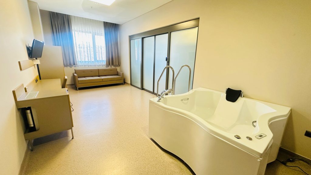 Suda Doğum Ünitesi, Yozgat Şehir Hastanesi’nin LDRP (Doğum, Lohusa ve Yenidoğan) servisinde anne adaylarının kullanımına sunulacak. Ünite, 2 oda ve 1 banyodan oluşuyor ve doğum yapmak isteyen annelere suyun rahatlatıcı etkisinden faydalanma imkânı tanıyacak. Bu özel ünitede, anne adaylarının doğum sürecinde daha rahat bir ortamda bulunmaları hedefleniyor. Suda doğumun, anneye doğum sırasında daha fazla hareket özgürlüğü tanıdığı ve doğumun ağrılarını azalttığı biliniyor.