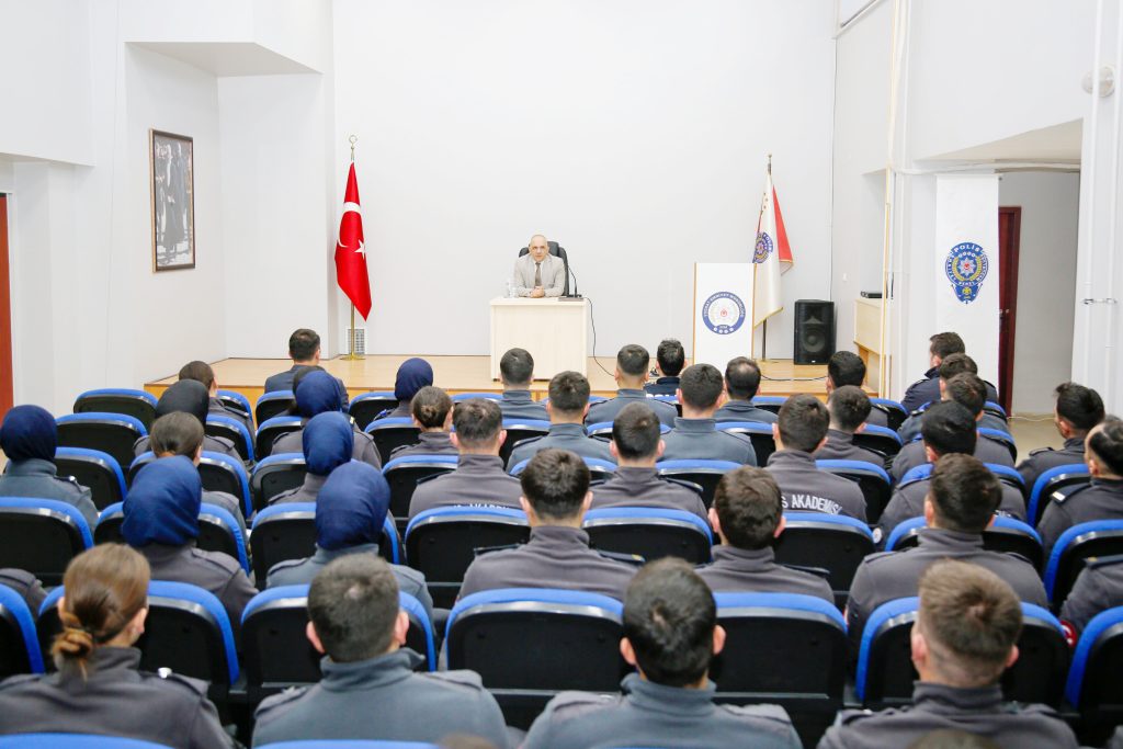 İl Emniyet Müdürü Recep Tecimer, polis adaylarına yönelik yaptığı konuşmada, meslek hayatı boyunca edindiği tecrübeleri aktardı. Mesleğin zorlukları ve gereklilikleri hakkında detaylı bilgi veren Tecimer, adayların gelecekte karşılaşacakları görevlerde başarılı olabilmeleri için disiplinli, doğru kararlar alabilen ve toplumla etkili iletişim kurabilen bireyler olmaları gerektiğini vurgulayarak, görev sırasında etik değerlerin ve halkla olan ilişkilerin ne denli önemli olduğuna dikkat çekti.