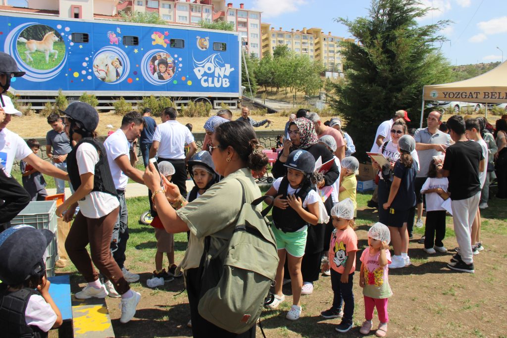 Yozgat Belediyesi, Türkiye Jokey Kulübü’nün katkılarıyla düzenlediği etkinlikte çocuklara unutulmaz anlar yaşattı. Çapanoğlu Mahallesi Yusuf Başer Parkı’nda gerçekleştirilen programda çocuklara puzzle ve boyama kitabı hediye edildi, ayrıca ponylere binerek kısa bir tur atma imkânı sağlandı.