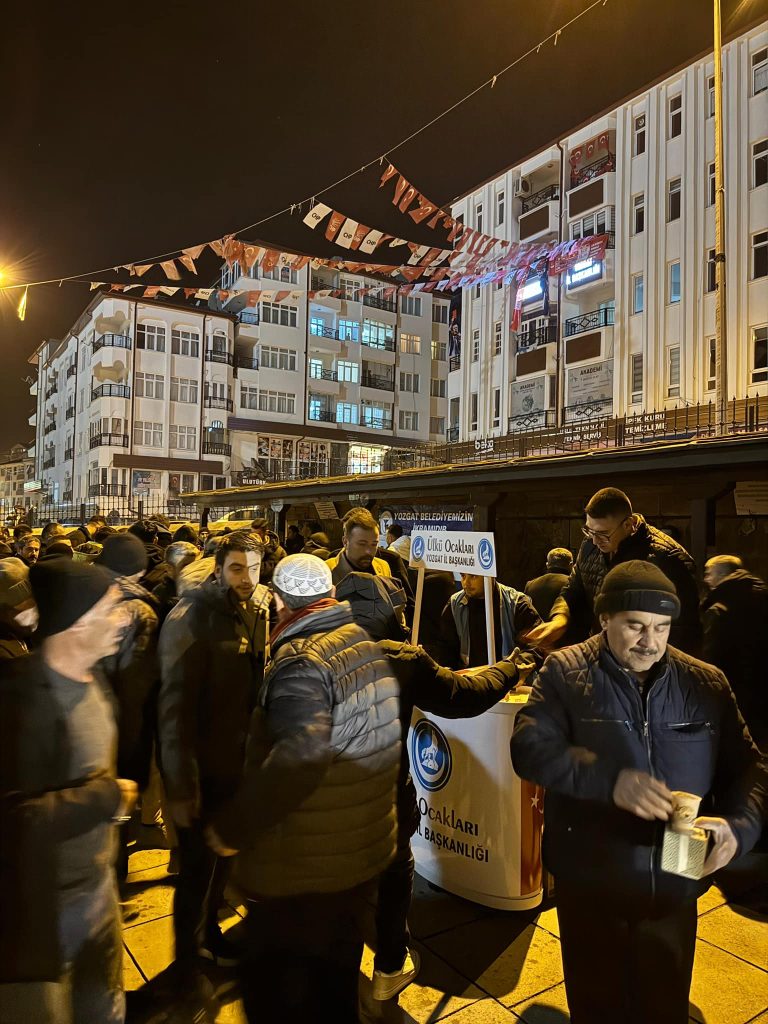 Ülkü Ocakları Yozgat İl Başkanlığı, Miraç Kandili vesilesiyle Çapanoğlu Büyük Camii’nde cami cemaati ve vatandaşlara kandil simidi ikramında bulundu. Camii avlusunda kurulan stantta, camiden çıkan vatandaşlara kandil simidi, çay ve çikolata dağıtıldı.