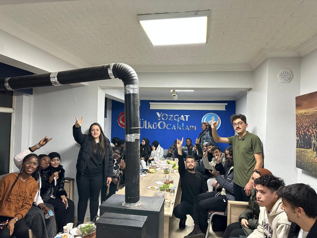 Ülkü Ocakları Yozgat İl Başkanı Fatih Akgül, Bozok Üniversitesi’nde eğitim gören dünyanın farklı ülkelerinden gelen öğrencileri Ülkü Ocakları’nda misafir ederek birlik ve kardeşlik ortamında bir araya geldi.