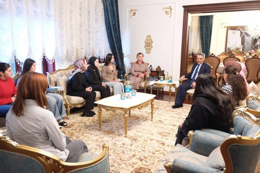 Yozgat Valisi Mehmet Ali Özkan ve eşi Arzu Özkan, Bozok Üniversitesi’nde eğitim gören ve Kınalı Hasan KYK Kız Yurdu’nda kalan öğrencileri Valilik Konutu’nda ağırladı.