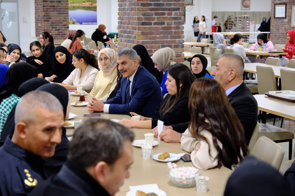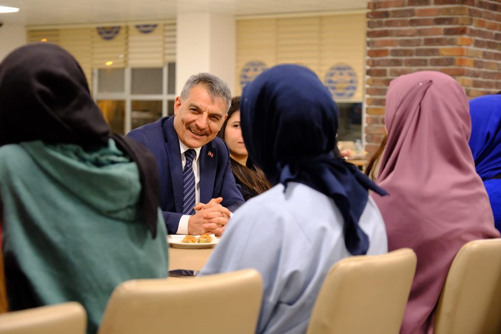 Yozgat Valisi Mehmet Ali Özkan, Gençlik ve Spor Bakanlığı’na bağlı Kınalı Hasan Kız Yurdu’nda kalan Yozgat Bozok Üniversitesi öğrencileriyle bir araya geldi.