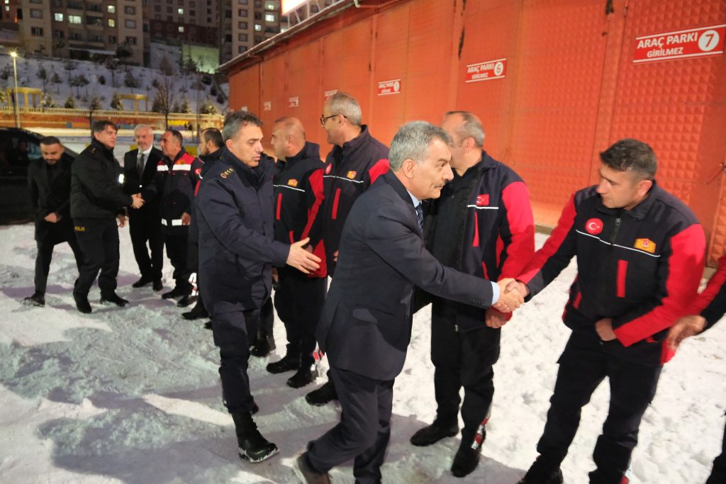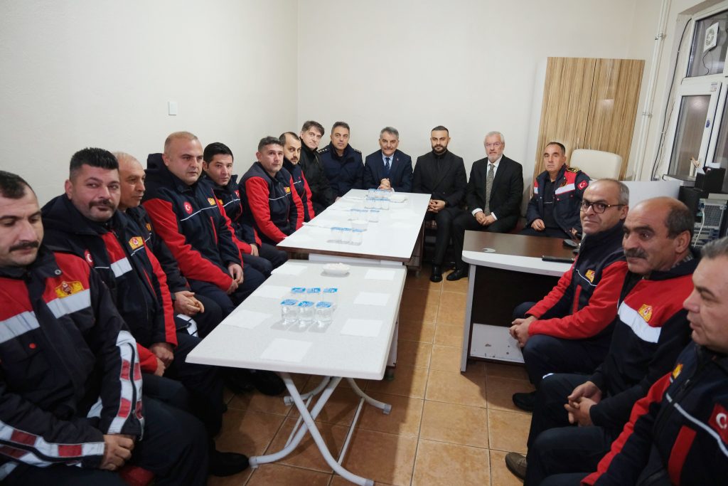 Vali Özkan, ziyaretlerini İtfaiye Müdürlüğü ile sürdürerek, yeni yıla nöbette giren itfaiye erlerinin yeni yılını kutladı ve fedakarca yürüttükleri çalışmalardan dolayı kendilerine teşekkür etti.