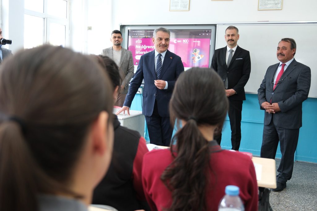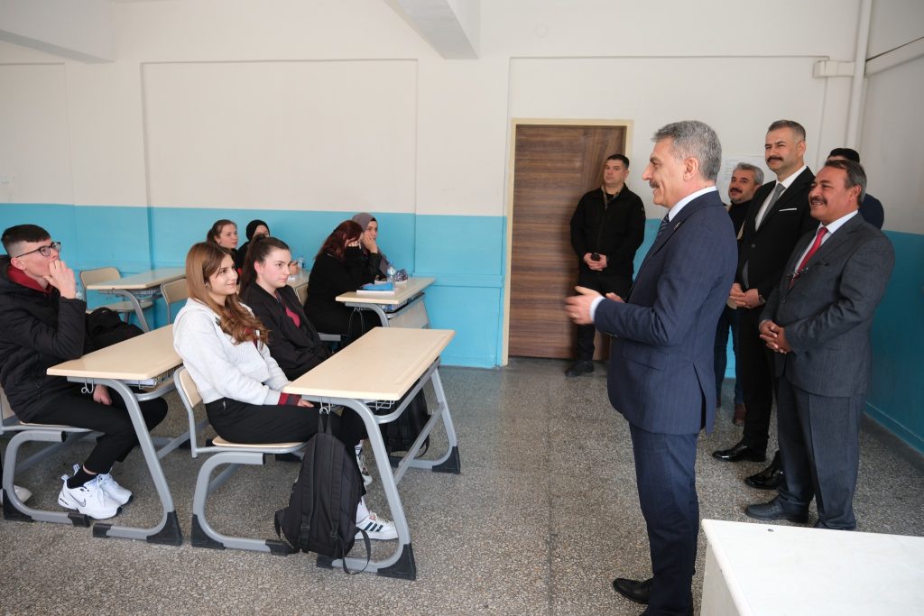 Okul girişinde öğrenciler ve öğretmenler tarafından sıcak bir şekilde karşılanan Vali Özkan, ilk olarak sınıfları ziyaret ederek öğrencilerle birebir sohbet etti.