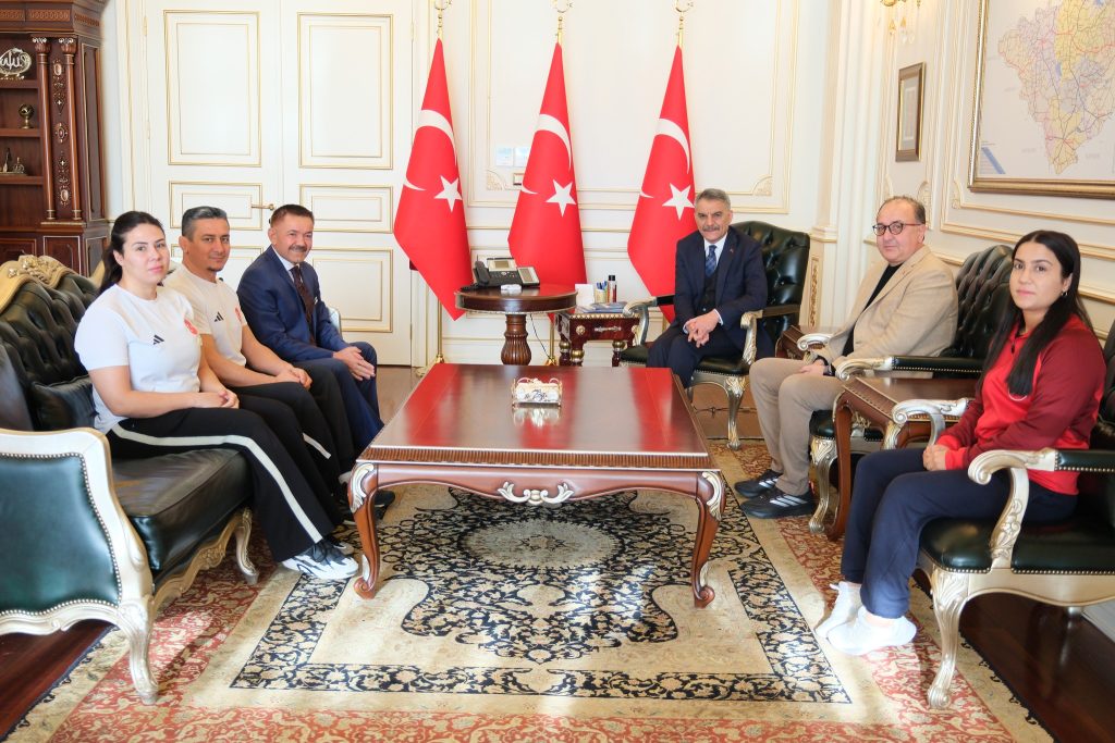 Yozgat Valisi Mehmet Ali Özkan, Trabzon’da düzenlenen U23 Kadınlar Güreş Türkiye Şampiyonası’nda 55 kiloda Türkiye üçüncüsü olarak önemli bir başarı elde eden ve bu derecesiyle milli takıma seçilmeye hak kazanan İl Özel İdaresi Güreş Takımı sporcusu Mihriban Sayıcı’yı makamında kabul etti.