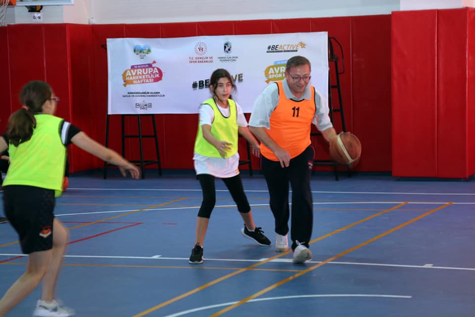 Oldukça renkli görüntüler oluştuğu antrenmanda çocuklar, Vali Polat ile birlikte basketbol maçı yaptı.
