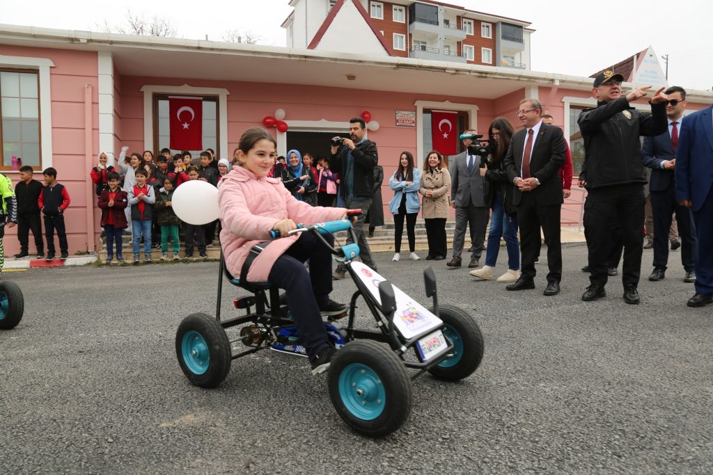 Vali Polat, çocukların heyecanına ortak olarak trafikte nasıl hareket edilmesi konusunda çocuklara bilgiler verdi. Vali Polat, “Bu uygulamalar ile geleceğimizin teminatı olan çocuklarımız trafikte daha güvenli bir şekilde hareket etmelerine katkı sağlanacaktır.”dedi.
