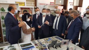 Vali Polat, daha sonra yürütücülüğünü Akdağmadeni Sosyal Hizmet Merkezi Müdürlüğü’nün proje ortaklığını ise Akdağmadeni Belediyesi ve Halk Eğitim Merkezi’nin yaptığı “Kop ile Üretim Yap Renk Kat” projesi serginin açılış kurdelesini kesti. El emeği ürünleri sergisini gezen Vali Polat, çalışmalar hakkında bilgi aldı.