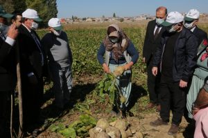 Yozgat Pancar Ekicileri Kooperatifi (PANKO) tarafından Yeşilöz Mahallesi’nde düzenlenen etkinliğe katılan Polat ve Alkan, hasat yapan kadınlarla sohbet ederek kolaylıklar diledi.