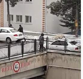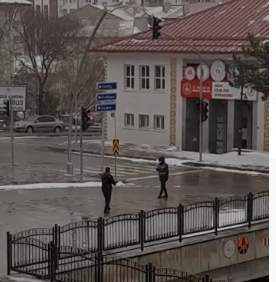 Yozgat Merkez Köprülü Kavşakta kar yağışı altında görev yapan polislere çay ikramında bulunan vatandaş, o bölgede oturan vatandaşların dikkatini çekti.