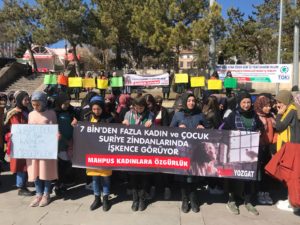 Yalçınkaya, “Bugün 8 Mart 2019.Dünya Kadınlar Günü’nde bombaların altındaki Suriye dahil 110 ülkede meydanlardayız. Bugün dünyanın dört bir yanında Suriyeli mahpus kadınlar için meydanlardayız. Buradan Suriye hapishanelerinde acı içinde özgürlük bekleyenleri ve meydanları doldurarak onlar için vicdanları ayağa kaldıranları selamlıyoruz. Biliyoruz ki; mazlumlar ve ezilenler için vicdanın haykırışından daha güçlü bir imkan yok. Vicdan Hareketi tüm çocuklar yaşasın diye; dili, inancı, ırkı fark etmeksizin tüm kadınlar korunsun diye oluşmuş uluslararası bir inisiyatiftir. Vicdan Hareketi insan hayatını korumayı hedefleyen ve herkes için onurlu bir yaşam isteyen bir merhamet hareketidir. Geçtiğimiz yıl bugün, dünyanın dört bir yanından kadınların bir araya geldiği Vicdan Konvoyu ile 10 binin üzerinde kadın Suriye sınırında buluşmuştu. Bu yıl ise dünyanın tüm meydanlarında kadın erkek bir aradayız. Bizler, dünyanın birçok ülkesinden gelen insanlar olarak, hukuksuzca tutulan, cinsel saldırıya ve işkenceye maruz kalan Suriyeli kadınların özgürlüğü için sesimizi yükseltiyoruz. Kadınlar olarak isyan ediyoruz. Tecavüzün, savaşlarda kadınlara yönelik işkencenin ve her türlü zulmün silah olarak kullanılmasına isyan ediyoruz. Bu kirli savaşlara isyan ediyoruz. Çocukların çırpınarak ölmesine isyan ediyoruz. “dedi.