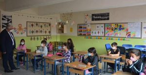 Okul ve çevresindeki ortak kullanım alanlarını da inceleyen Yazıcı, okul yöneticilerinden alınan önlemler ve salgın sürecinin yönetimi hakkında bilgi aldı.