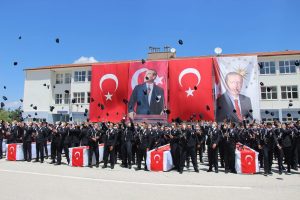 Konuşmaların ardından polis adayları mezuniyet sevinçlerini şapkalarını havaya atarak yaşadı.