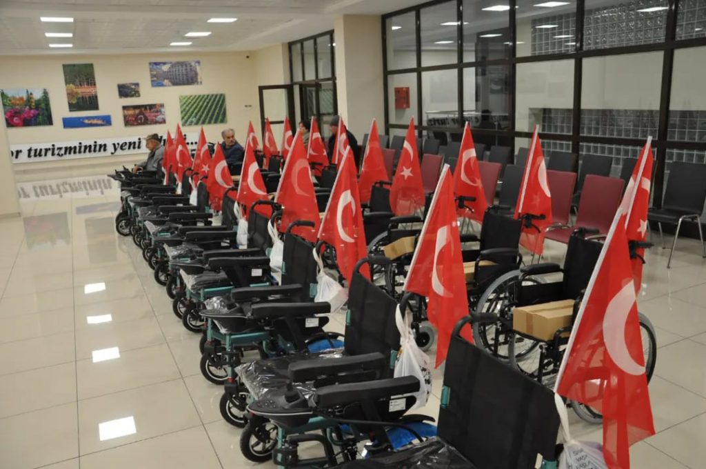 Yozgat’ta, Türkiye Esnaf ve Sanatkarlar Kredi ve Kefalet Kooperatifleri Birlikleri (TESKOMB) tarafından engelli vatandaşlara bağışlanan 20 adet akülü sandalye, düzenlenen törenle sahiplerine teslim edildi.