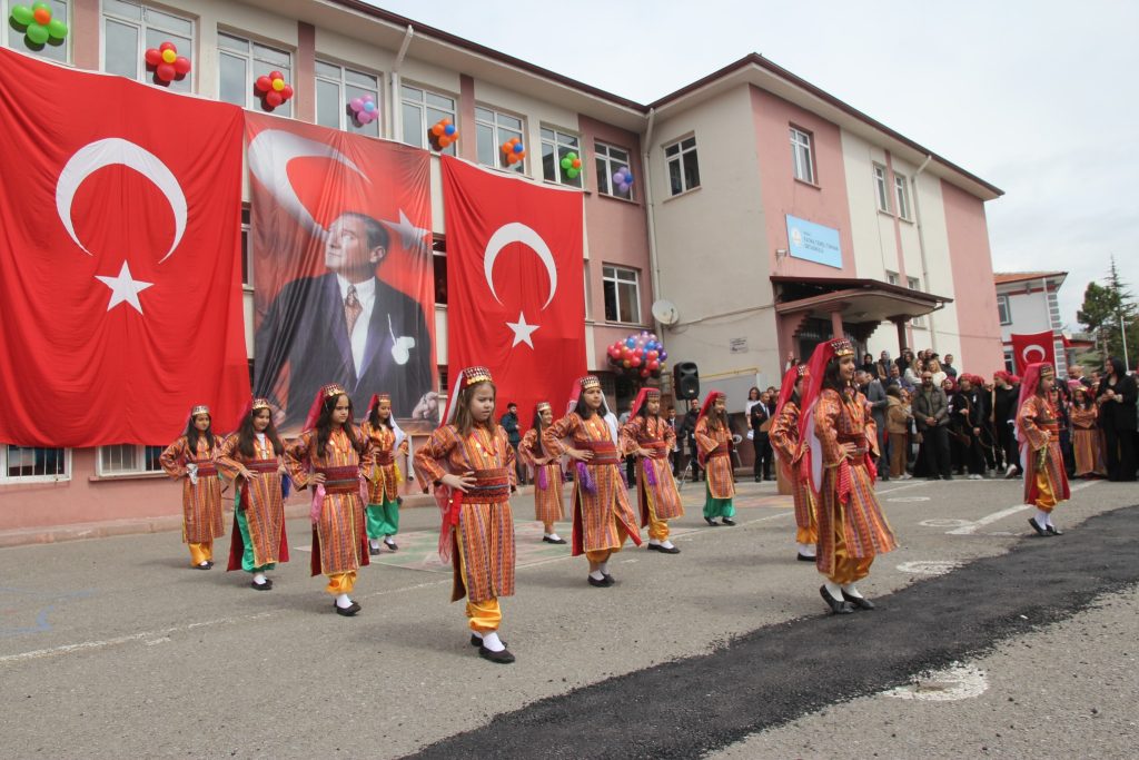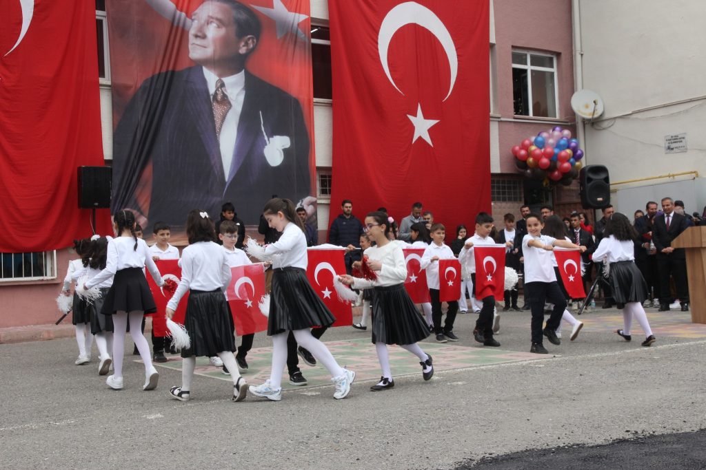 Cumhuriyet Meydanı’nda Atatürk Anıtı’na çelenk sunulmasıyla başlayan kutlama programı Fatma Temel Turhan Ortaokulu Bahçesinde devam etti.