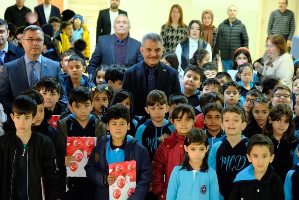 Yozgat’ta, 2023-2024 eğitim öğretim yılı yarıyıl tatiline girmesi nedeniyle 75. Yıl Dr. Müzeyyen Çokdeğerli İlkokulu’nda düzenlenen karne törenine, Yozgat Valisi Mehmet Ali Özkan ve İl Milli Eğitim Müdürü İsmail Altınkaynak katılarak öğrencilere karnelerini dağıttı ve kitap hediye etti.
