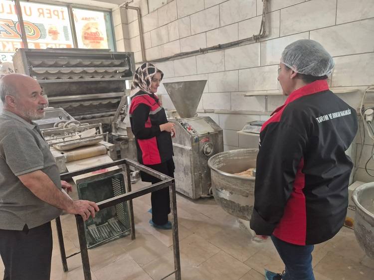 Denetimler kapsamında ekmek ve pide üretimi yapılan işletmelerde; un, maya, katkı maddeleri, üretim alanları, ekipmanlar ve personel hijyeni titizlikle incelendi.