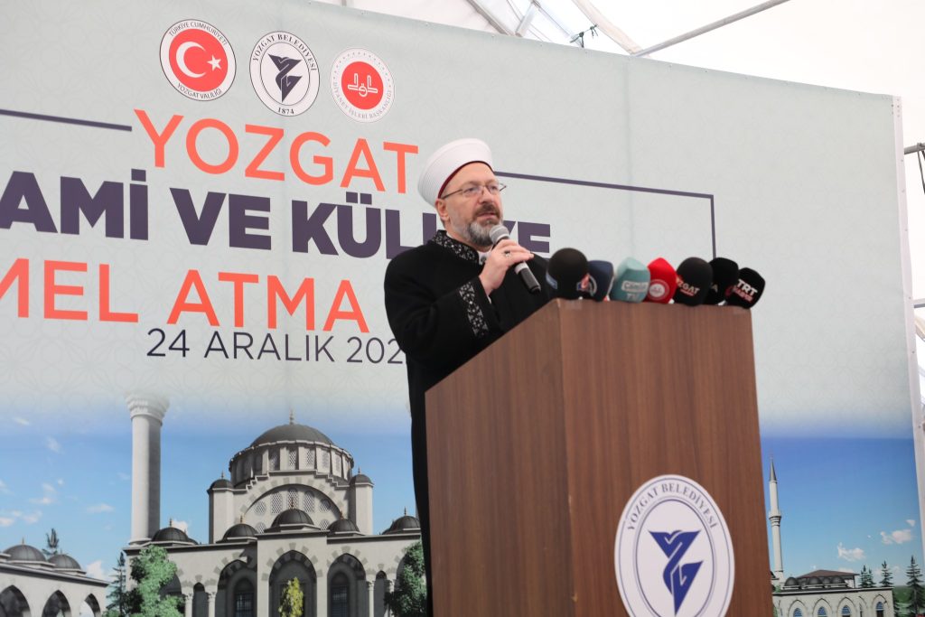 Türkiye genelinde 90 bin cami ve 150 bine yakın Diyanet İşleri Başkanlığı mensubuyla milletin manevi ve dini hayatına katkı sunmaya gayret ettiklerini vurgulayan Erbaş, “Camimizin tamamlanmasıyla cami dersleriyle, eğitimle, öğretimle, içinde yapılacak 4-6 yaş Kur’an kursuna devam eden çocuklarımızın eğitimleriyle, camimizi ihya etmiş oluruz. Hayır sahibi kardeşlerimden Allah razı olsun. Cami ve külliyenin ismiyle ilgili istişarelerde bulunduk. Yozgat’ta dört halifeden yalnızca Hazreti Ali’nin isminin verildiği bir caminin olmadığı ve bu nedenle camiye Hazreti Ali’nin ismini verdik.”dedi.