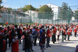 Konuşmaların ardından, öğrenciler ellerindeki Türk bayrakları ile okunan şiir ve halk oyunları gösterisine eşlik etti.