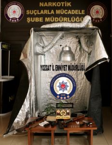 İl Emniyet Müdürlüğünden yapılan yazılı açıklamada şu ifadelere yer verildi: “Şüphelilerin ikametlerinde yapılan aramada; 1 Adet ruhsatsız av tüfeği, toplamda 5 adet kutu halinde sıvı kenevir gübresi, 1 Adet 7.65 çapında Ruhsatsız tabanca, 1 Adet Kuru sıkı tabanca, 1 Adet Ruhsatsız Av Tüfeği, 5 Adet 7.65 çapında fişek, 1 Adet kenevir yetiştiriciliğinde kullanılan içi alüminyum kaplı özel dolap ve dolap içerisinde 4 Adet saksı içerisinde kenevir bitkisi, yine dolap içerisinde 2 adet pet şişe içerisinde kenevir bitkisi, 1,14 gram esrar maddesi, 1,12 gram kenevir tohumu ve bir 1 adet hassas terazi ele geçirilmiştir. F.Ö.A isimli şahıs ifade işlemlerinin ardından alınan talimatlar doğrultusunda serbest bırakılmış, O.D. isimli şahıs gözaltına alındı. O.D., gerekli iş ve işlemlerin yapılabilmesi için Narkotik Suçlarla Mücadele Şube Müdürlüğüne intikal ettirilmiştir.”
