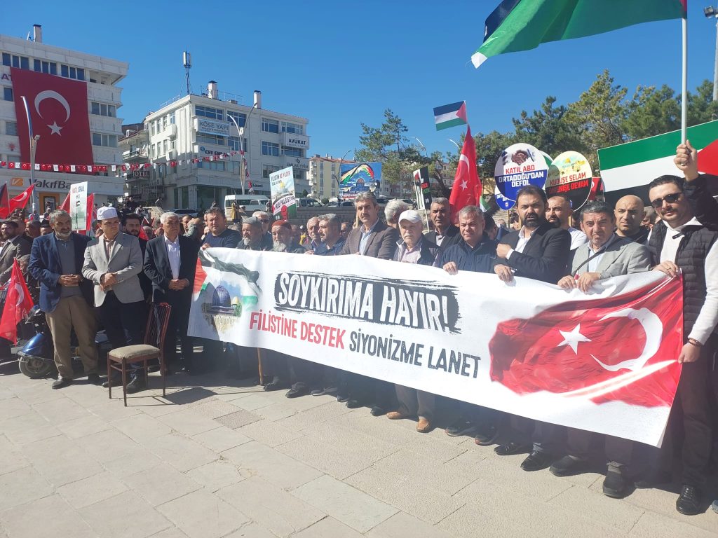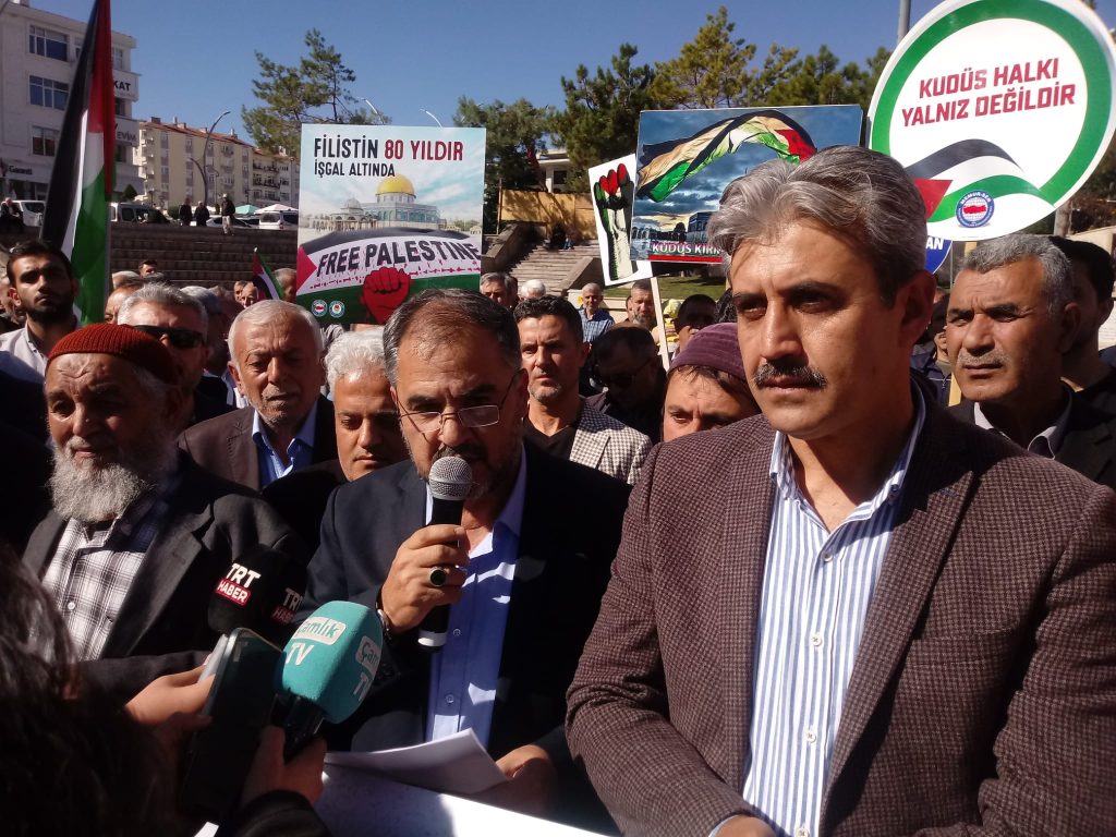 Yozgat’ta, Sivil İnsiyatif Platformu öncülüğünde bir araya gelen sivil toplum kuruluşları, İsrail’in Filistin’deki zulmüne karşı Cumhuriyet Meydanı’nda sert sözlerle tepki gösterdi.